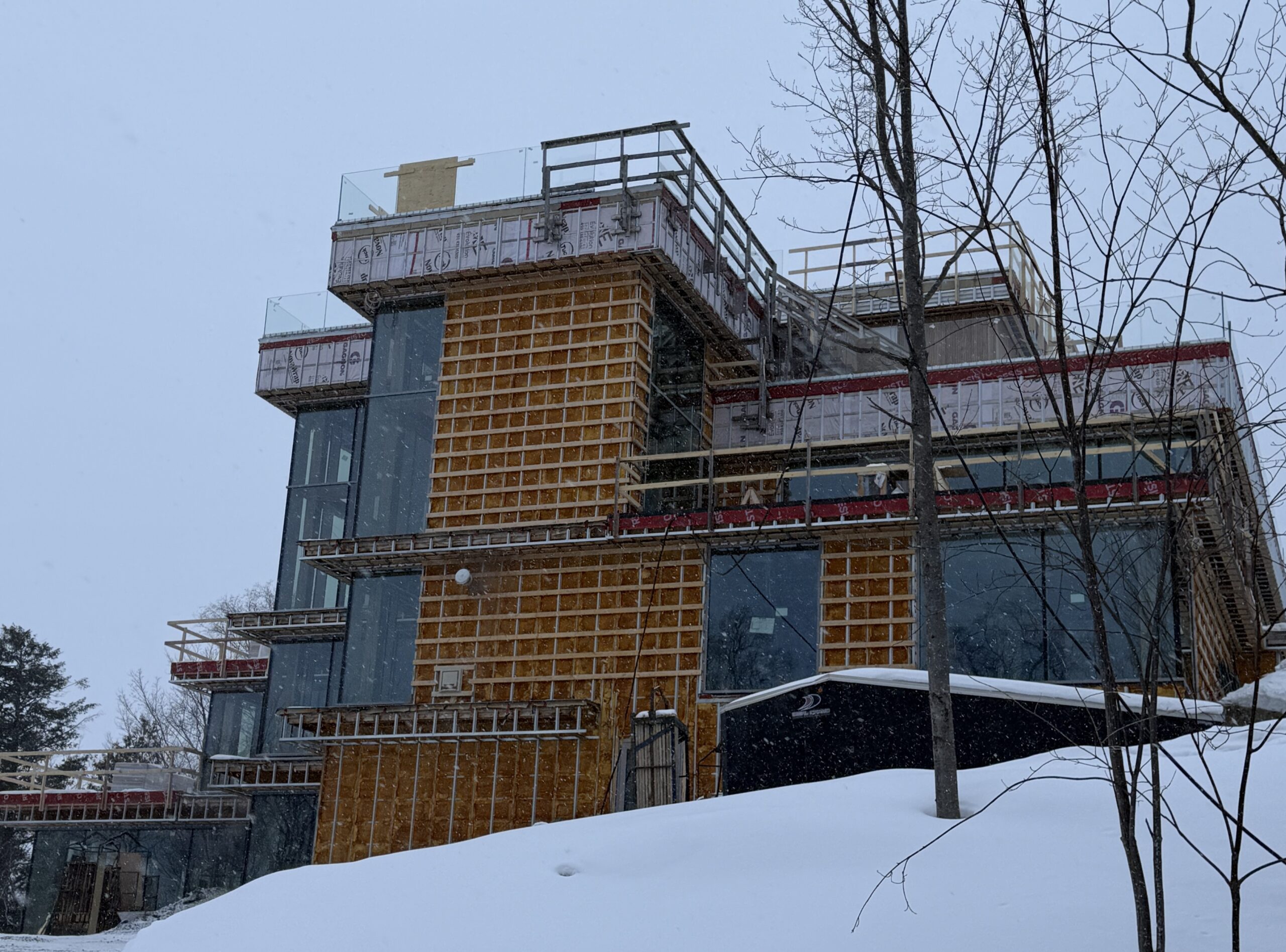 Le projet de Pura Vida Tremblant Inc. (dirigé par Joseph Zakher) défie la logique mathématique. Bien que le permis de construction n’autorise que deux étages, les preuves photographiques présentées par Les Amis au conseil municipal en 2024 révèlent une structure qui en compte clairement quatre. Malgré cette évidence, la Ville a persisté à affirmer que « le projet est conforme ».