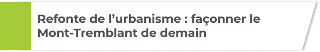 De nombreux citoyens de Mont-Tremblant cherchent à mieux protéger leur qualité de vie ainsi que l’environnement, les commerces locaux, la beauté naturelle et l’écosystème unique de Mont-Tremblant, avec ses lacs, ses rivières, ses montagnes et sa végétation. Ils souhaitent que Mont-Tremblant conserve son environnement florissant et ses trésors naturels publics. Alors que la région continue d’évoluer très rapidement, il est important de s’assurer que les projets immobiliers soient mieux contrôlés, plus durables et mieux intégrés à leur environnement.